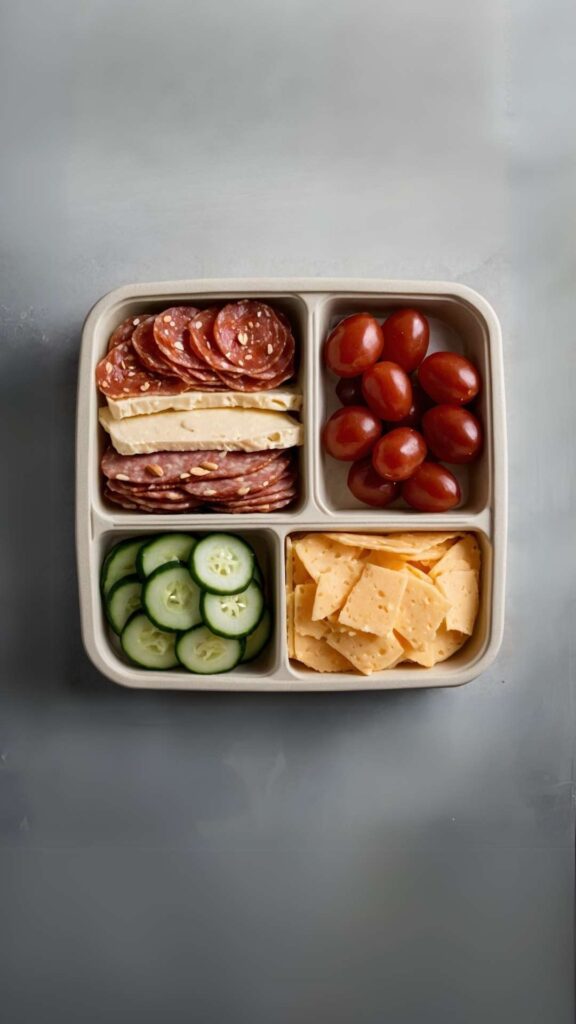 A simple, protein-packed snack box that satisfies salty cravings while keeping carbs low. This is a great grab-and-go option that doesn’t require much prep and can be eaten anywhere, anytime.